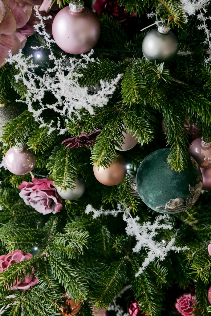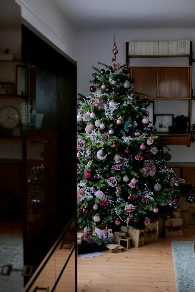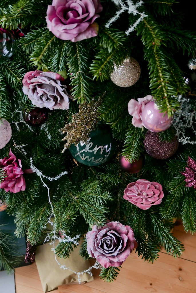 Wie jedes Jahr ist er auch heuer wieder sehr üppig geschmückt und Patrick hat exakt 200 Teile draufgehängt. Den gesamten Schmuck haben wir dieses Jahr von Depot (Werbung) gekauft. Patrick hat ca. zwei Stunden Kugeln und Blumen zusammengesucht, während ich die Gelegenheit nutzen konnte, um Unmengen an Deko zu kaufen, ohne dass er sich aufregen konnte. ; )