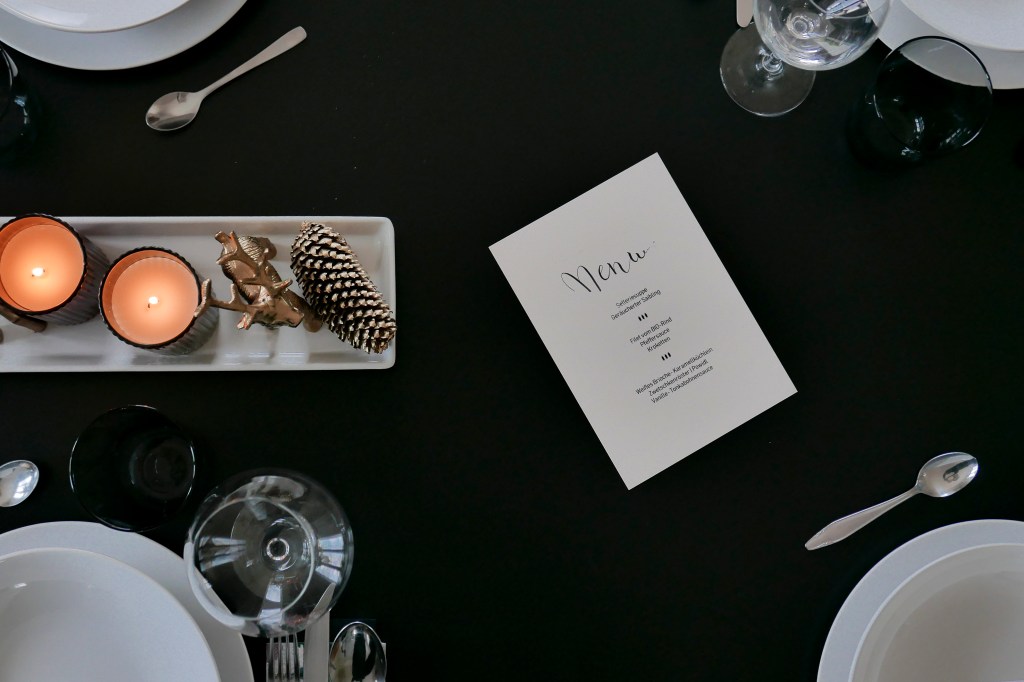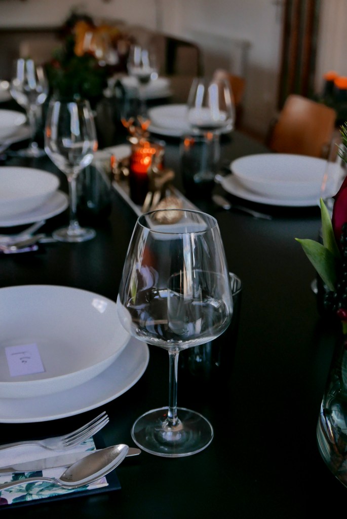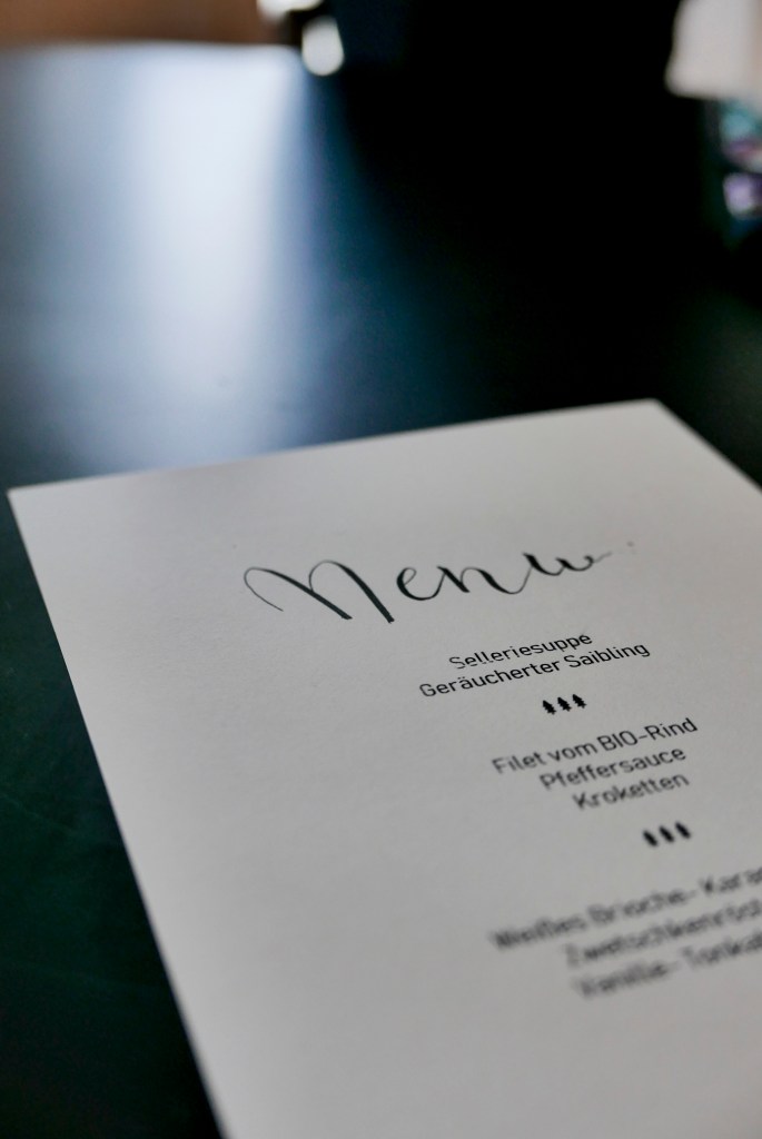 Ich muss zugeben, ich hatte den Schmuck beim Aussuchen der Blumen rötlicher in Erinnerung. Egal, es hat trotzdem gut harmoniert. Auch das Menü ist wirklich gelungen und unsere Gäste waren mehr als zufrieden.