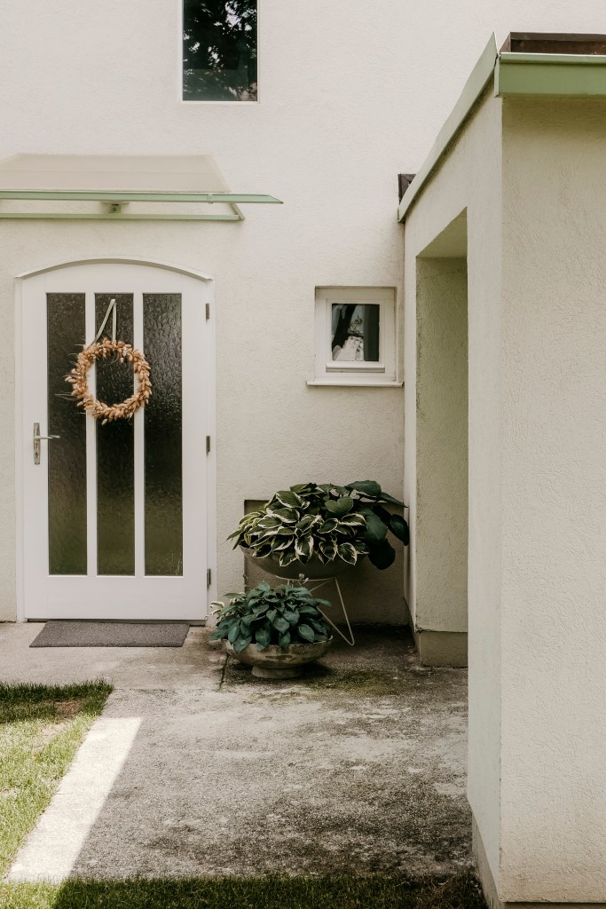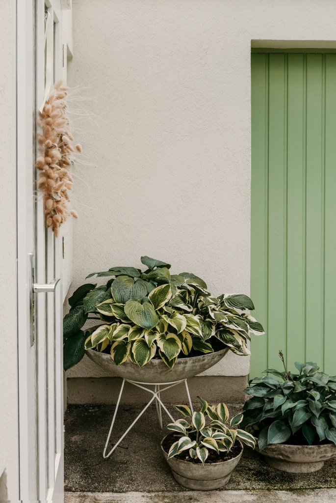 Lang ist es her, dass ich euch von unserem Leben im Siedlungshaus berichtet habe. Doch jetzt habe ich Sommerferien und somit ein bisschen mehr Zeit zum Schreiben. Wie auf INSTAGRAM versprochen, entführe ich euch endlich mal ein bisschen nach draußen in unseren Garten….der natürlich noch lange nicht fertig ist. Den Eingangsbereich kennt ihr ja bereits ein bisschen. Im Sommer befinden sich in den Eternit-Pflanzgefäßen immer meine geliebten Funkien. Im Frühjahr stehen diese nämlich auf der Terrasse und dürfen Sonne tanken und beim Eingang sind dann noch Frühjahrsblüher in den Gefäßen gepflanzt. Zum Glück konnte ich schon eine schöne Sammlung an alten Eternitschalen auf Flohmärkten ergattern, sodass ich nach Lust und Laune wechseln kann.
