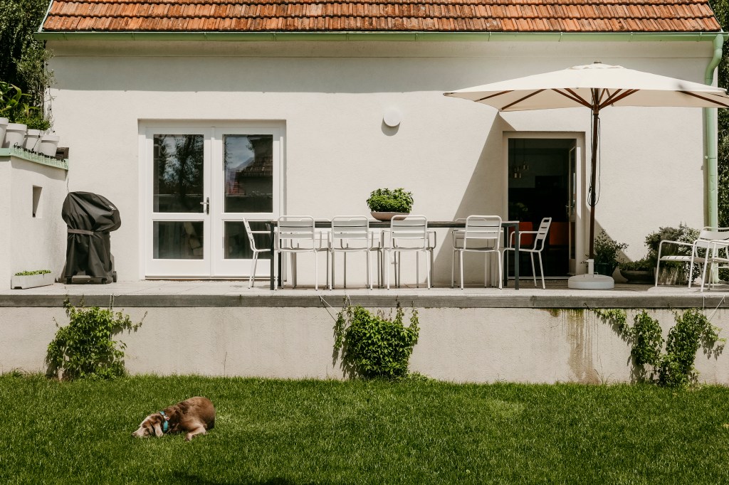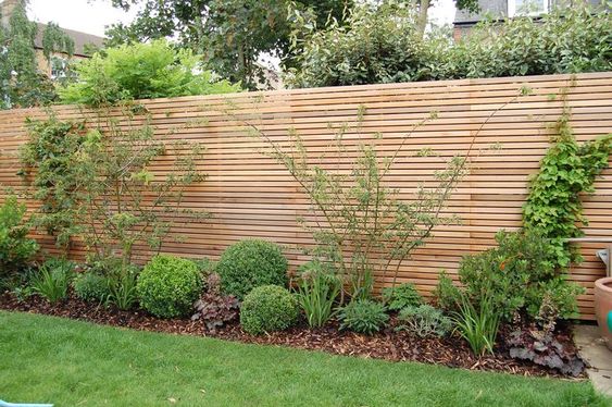 Wir haben schon so einige nette Stunden mit Freuden und Familie darauf verbracht und sind sehr froh, dass wir uns damals dafür entschieden haben, die Terrasse auf Höhe der Türen zu errichten, sodass man ebenerdig rausgehen kann. Wenn dann auch der wilde Wein den Sockel schön begrünt hat, damit man das ablaufende Wasser nicht mehr sieht, sind wir voll und ganz zufrieden. Viel mehr gibt es bei uns draußen noch nicht zu sehen, doch die nächsten Projekte sind schon in Planung. Noch heuer soll nämlich eine Trennung zwischen dem Studio (sieht man in einem Bild oben!) und dem Garten errichtet werden und zwar in Form von einer Holzsprossenwand. Ich bin schon sehr gespannt, ob unsere Wünsche umgesetzt werden können. Hier habt ihr jedenfalls einen Ausblick wie es ca. aussehen könnte. 🙂 (Fotos PINTEREST)